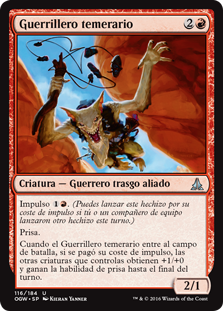 | Rules | Surge (You may cast this spell for its surge cost if you or a teammate has cast another spell this turn.) Haste When Reckless Bushwhacker enters the battlefield, if its surge cost was paid, other creatures you control get +1/+0 and gain haste until end of turn. |