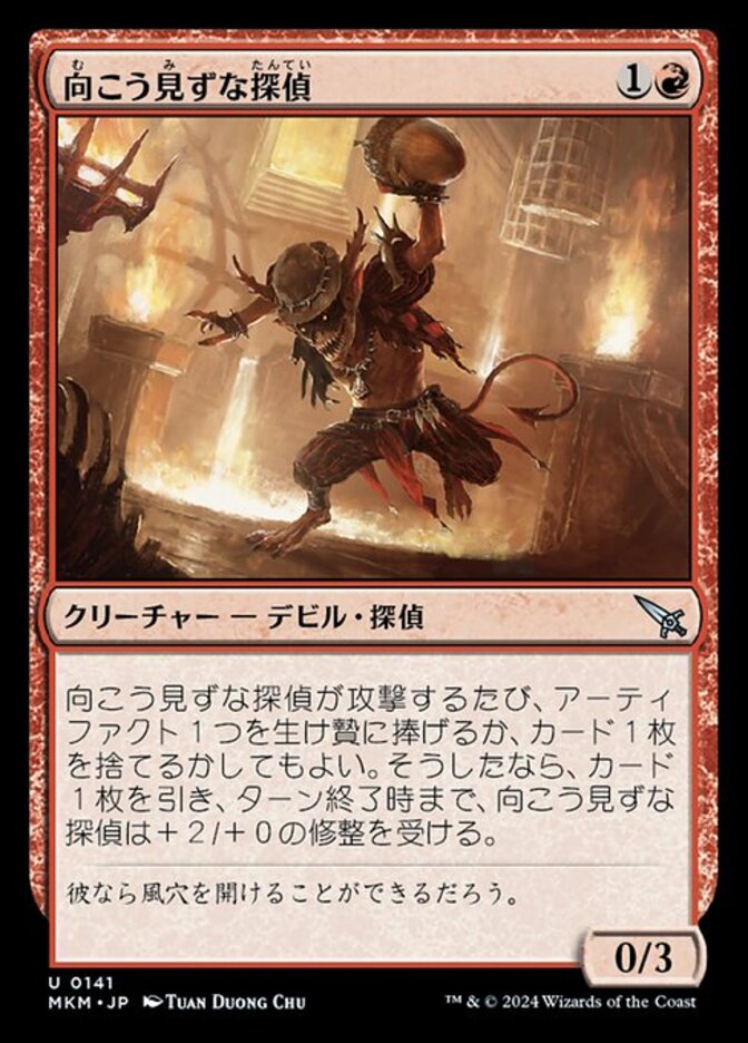 | Rules | Whenever Reckless Detective attacks, you may sacrifice an artifact or discard a card. If you do, draw a card and Reckless Detective gets +2/+0 until end of turn. |