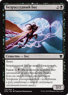 | Rules | Flying Reckless Imp can't block. Dash (You may cast this spell for its dash cost. If you do, it gains haste, and it's returned from the battlefield to its owner's hand at the beginning of the next end step.) |