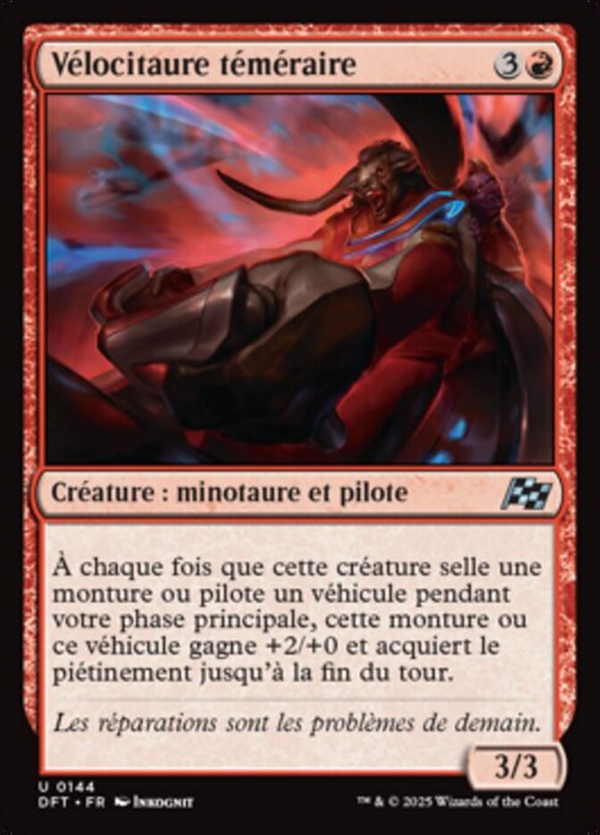 | Rules | Whenever this creature saddles a Mount or crews a Vehicle during your main phase, that Mount or Vehicle gets +2/+0 and gains trample until end of turn. |