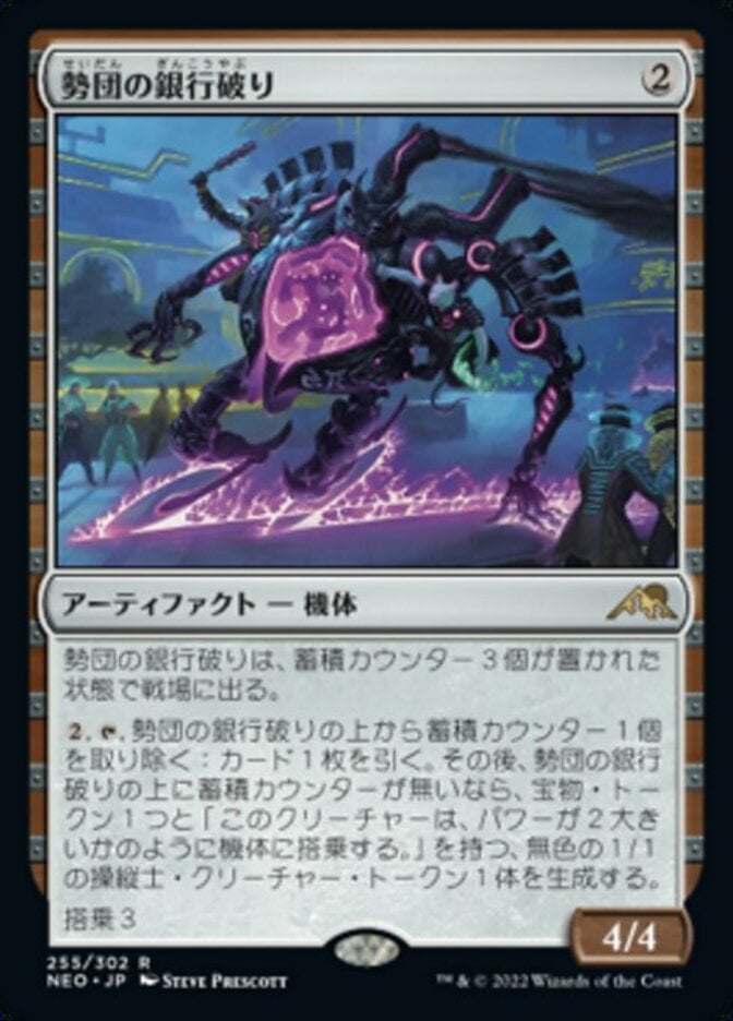 | Rules | Reckoner Bankbuster enters the battlefield with three charge counters on it. , , Remove a charge counter from Reckoner Bankbuster: Draw a card. Then if there are no charge counters on Reckoner Bankbuster, create a Treasure token and a 1/1 colorless Pilot creature token with "This creature crews Vehicles as though its power were 2 greater." Crew 3 |