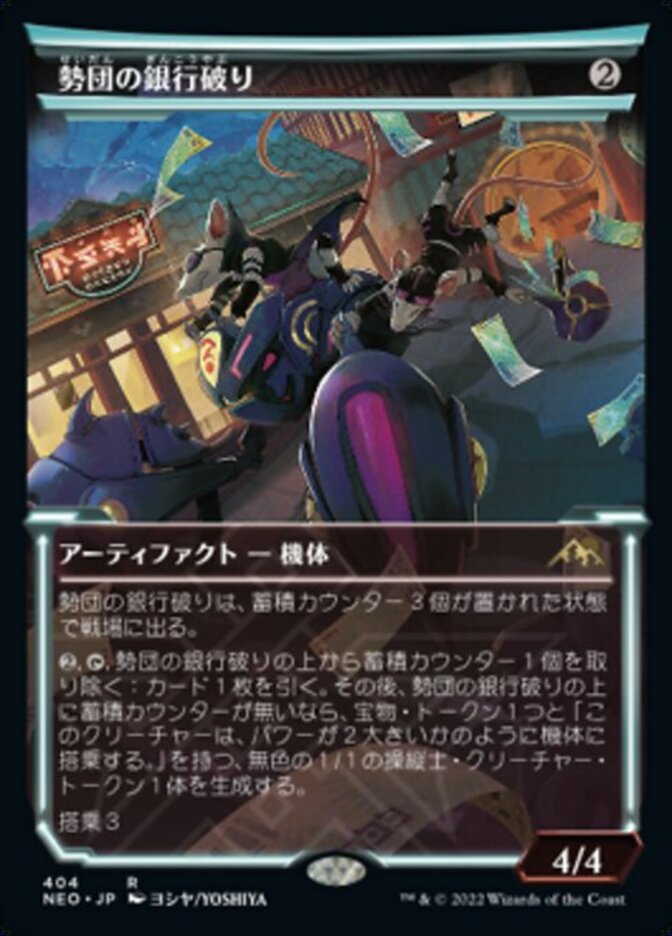 | Rules | Reckoner Bankbuster enters the battlefield with three charge counters on it. , , Remove a charge counter from Reckoner Bankbuster: Draw a card. Then if there are no charge counters on Reckoner Bankbuster, create a Treasure token and a 1/1 colorless Pilot creature token with "This creature crews Vehicles as though its power were 2 greater." Crew 3 |