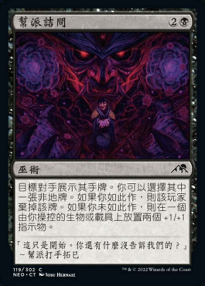 | Rules | Target opponent reveals their hand. You may choose a nonland card from it. If you do, that player discards that card. If you don't, put two +1/+1 counters on a creature or Vehicle you control. |