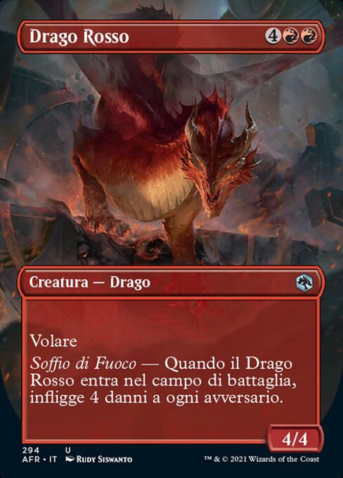 | Rules | Flying Fire Breath — When Red Dragon enters the battlefield, it deals 4 damage to each opponent. |