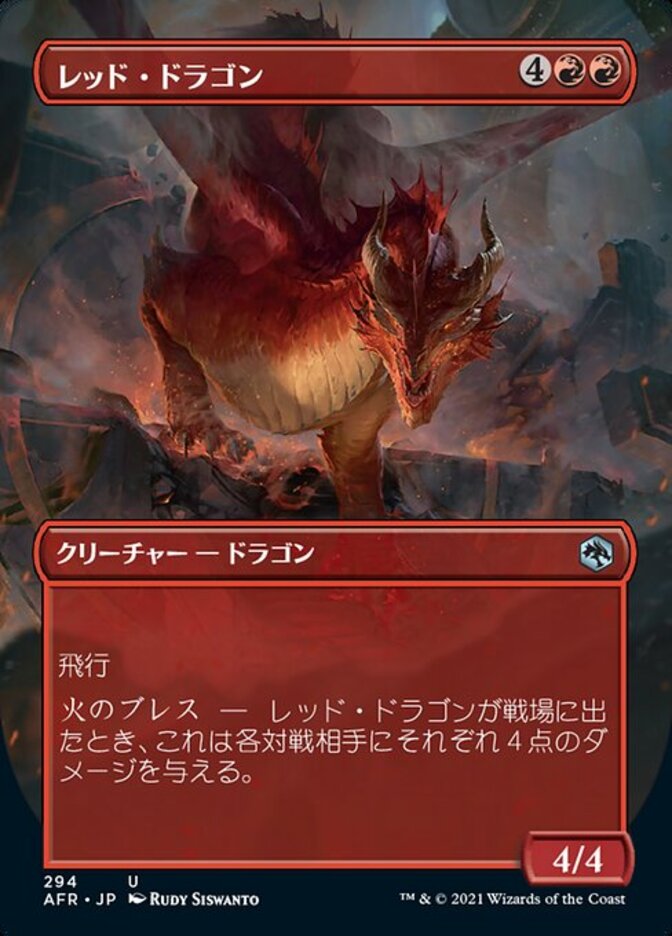 | Rules | Flying Fire Breath — When Red Dragon enters the battlefield, it deals 4 damage to each opponent. |