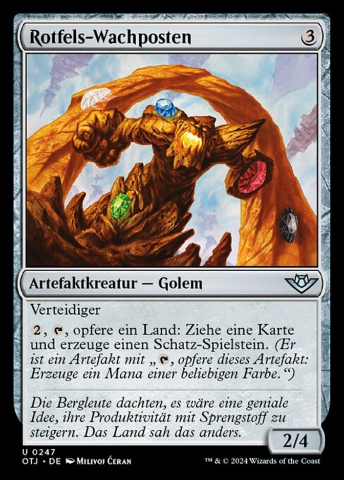 | Rules | Defender , , Sacrifice a land: Draw a card and create a Treasure token. (It's an artifact with ", Sacrifice this artifact: Add one mana of any color.") |