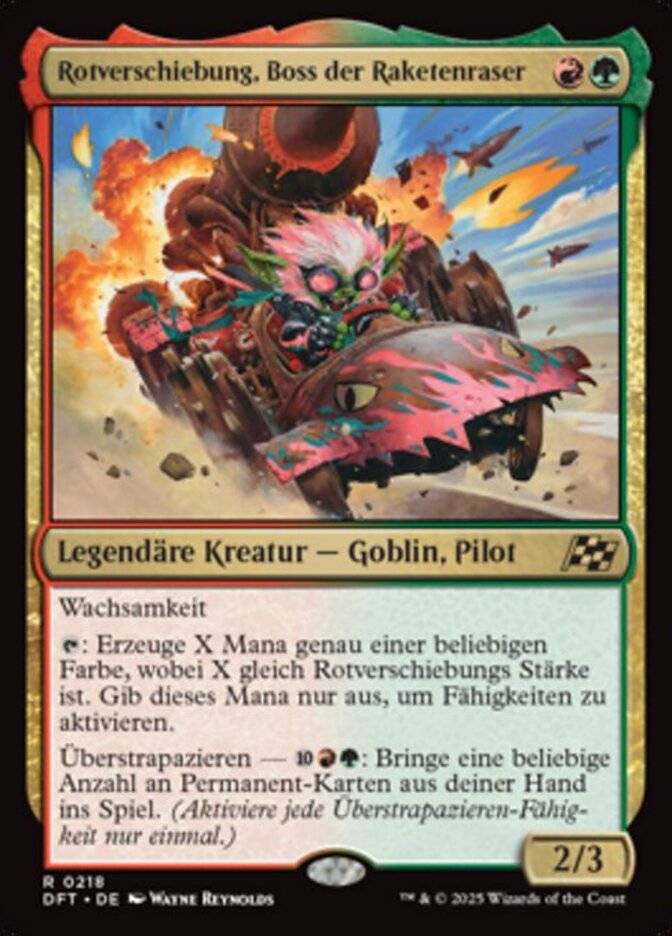 | Rules | Vigilance : Add X mana of any one color, where X is Redshift's power. Spend this mana only to activate abilities. Exhaust — : Put any number of permanent cards from your hand onto the battlefield. (Activate each exhaust ability only once.) |