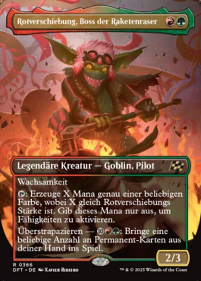 | Rules | Vigilance : Add X mana of any one color, where X is Redshift's power. Spend this mana only to activate abilities. Exhaust — : Put any number of permanent cards from your hand onto the battlefield. (Activate each exhaust ability only once.) |