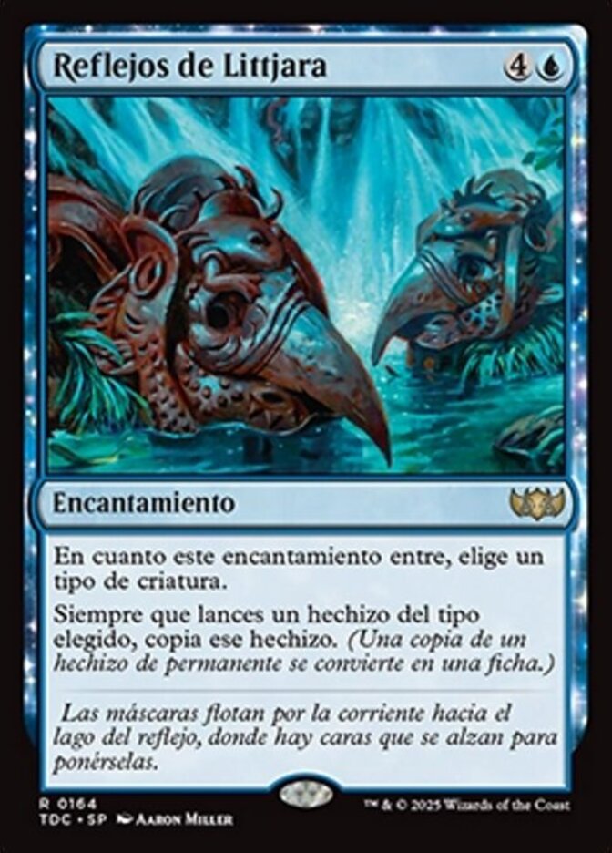 | Rules | As Reflections of Littjara enters the battlefield, choose a creature type. Whenever you cast a spell of the chosen type, copy that spell. (A copy of a permanent spell becomes a token.) |