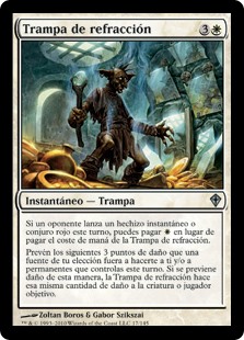 | Rules | If an opponent cast a red instant or sorcery spell this turn, you may pay rather than pay this spell's mana cost. Prevent the next 3 damage that a source of your choice would deal to you and/or permanents you control this turn. If damage is prevented this way, Refraction Trap deals that much damage to any target. |