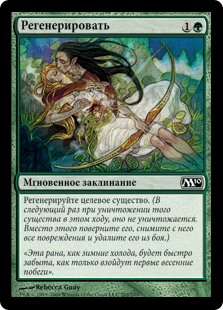 | Rules | Regenerate target creature. (The next time that creature would be destroyed this turn, it isn't. Instead tap it, remove all damage from it, and remove it from combat.) |