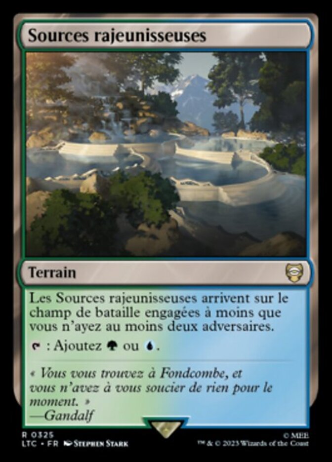 | Rules | Rejuvenating Springs enters the battlefield tapped unless you have two or more opponents. : Add or . |