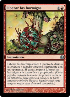 | Rules | Release the Ants deals 1 damage to any target. Clash with an opponent. If you win, return Release the Ants to its owner's hand. (Each clashing player reveals the top card of their library, then puts that card on the top or bottom. A player wins if their card had a higher mana value.) |
