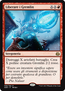 | Rules | Destroy X target artifacts. Create X 2/2 red Gremlin creature tokens. |