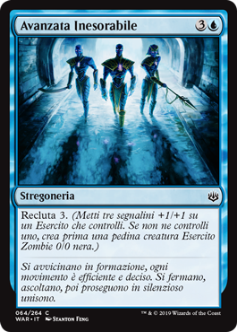 | Rules | Amass 3. (Put three +1/+1 counters on an Army you control. If you don't control one, create a 0/0 black Zombie Army creature token first.) |