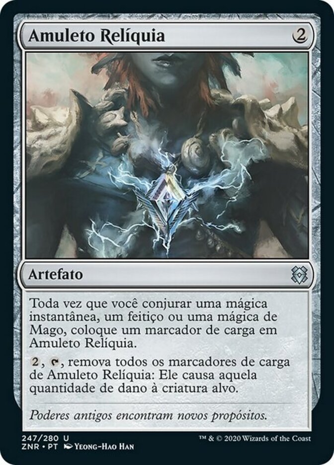 | Rules | Whenever you cast an instant, sorcery, or Wizard spell, put a charge counter on Relic Amulet. , , Remove all charge counters from Relic Amulet: It deals that much damage to target creature. |