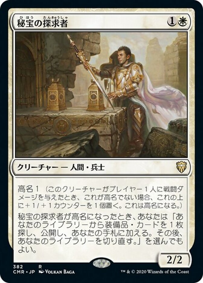 When Relic Seeker becomes renowned, you may search your library for an Equipment card, reveal it, put it into your hand, then shuffle.