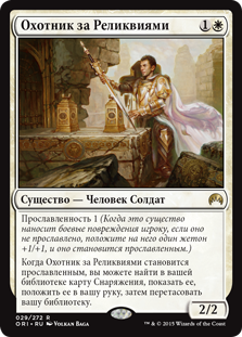 | Rules | Renown 1 (When this creature deals combat damage to a player, if it isn't renowned, put a +1/+1 counter on it and it becomes renowned.) When Relic Seeker becomes renowned, you may search your library for an Equipment card, reveal it, put it into your hand, then shuffle. |