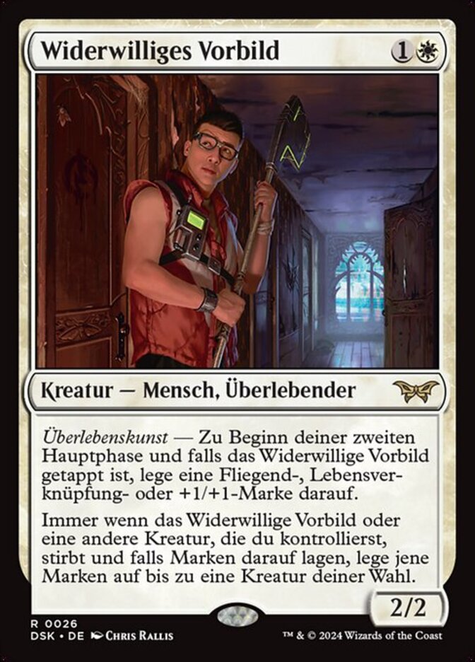 | Rules | Survival — At the beginning of your second main phase, if Reluctant Role Model is tapped, put a flying, lifelink, or +1/+1 counter on it. Whenever Reluctant Role Model or another creature you control dies, if it had counters on it, put those counters on up to one target creature. |