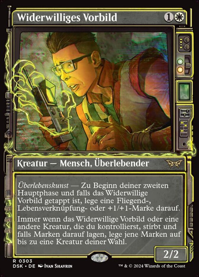 | Rules | Survival — At the beginning of your second main phase, if Reluctant Role Model is tapped, put a flying, lifelink, or +1/+1 counter on it. Whenever Reluctant Role Model or another creature you control dies, if it had counters on it, put those counters on up to one target creature. |