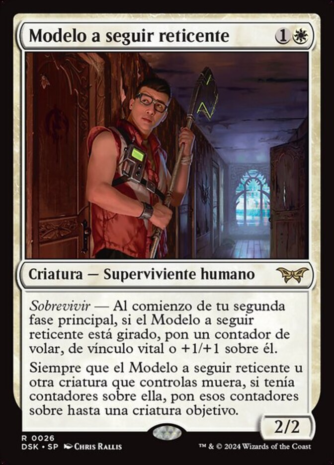 | Rules | Survival — At the beginning of your second main phase, if Reluctant Role Model is tapped, put a flying, lifelink, or +1/+1 counter on it. Whenever Reluctant Role Model or another creature you control dies, if it had counters on it, put those counters on up to one target creature. |