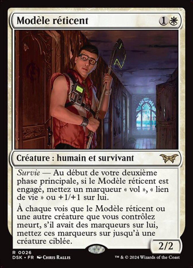 | Rules | Survival — At the beginning of your second main phase, if Reluctant Role Model is tapped, put a flying, lifelink, or +1/+1 counter on it. Whenever Reluctant Role Model or another creature you control dies, if it had counters on it, put those counters on up to one target creature. |