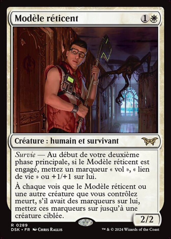 | Rules | Survival — At the beginning of your second main phase, if Reluctant Role Model is tapped, put a flying, lifelink, or +1/+1 counter on it. Whenever Reluctant Role Model or another creature you control dies, if it had counters on it, put those counters on up to one target creature. |