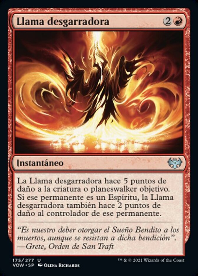 | Rules | Rending Flame deals 5 damage to target creature or planeswalker. If that permanent is a Spirit, Rending Flame also deals 2 damage to that permanent's controller. |