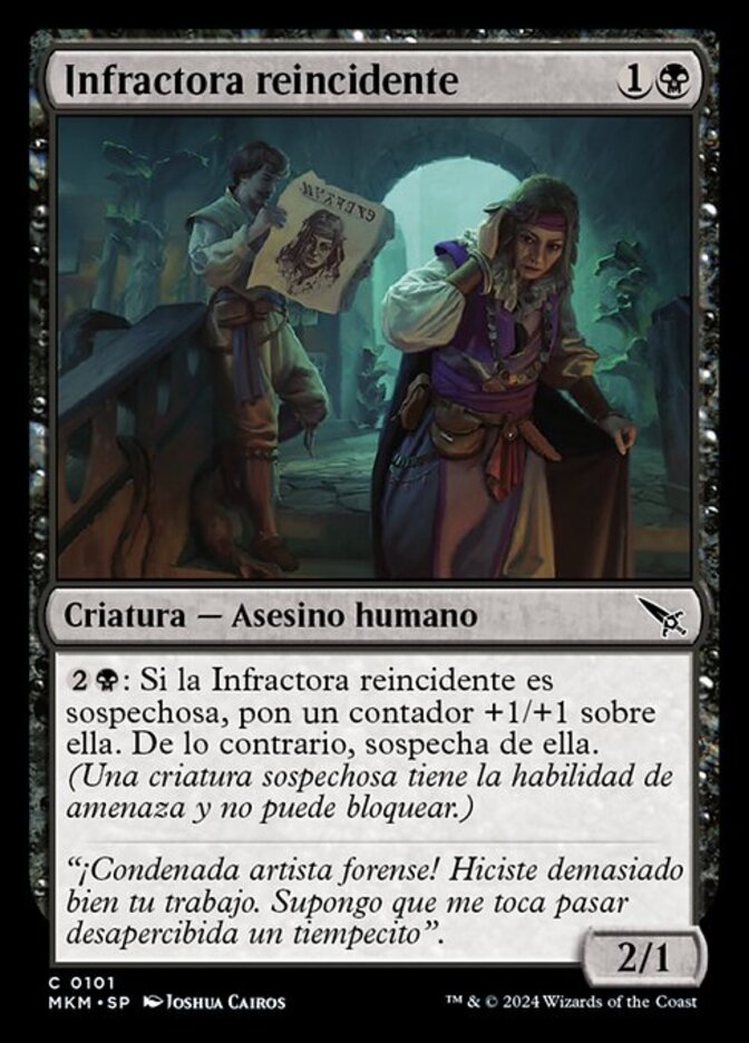 | Rules | : If Repeat Offender is suspected, put a +1/+1 counter on it. Otherwise, suspect it. (A suspected creature has menace and can't block.) |