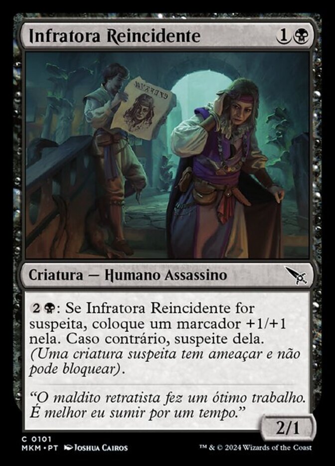 | Rules | : If Repeat Offender is suspected, put a +1/+1 counter on it. Otherwise, suspect it. (A suspected creature has menace and can't block.) |