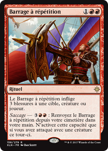 | Rules | Repeating Barrage deals 3 damage to any target. Raid — : Return Repeating Barrage from your graveyard to your hand. Activate only if you attacked this turn. |