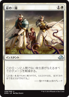| Rules | Prevent all damage that would be dealt this turn by non-Human sources. |