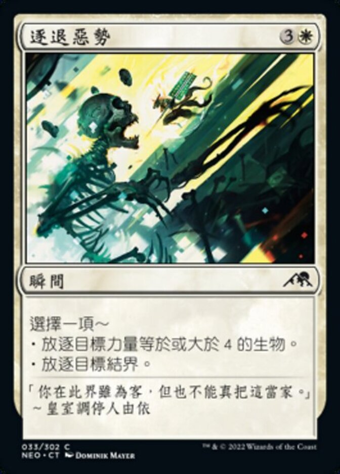 | Rules | Choose one — • Exile target creature with power 4 or greater. • Exile target enchantment. |