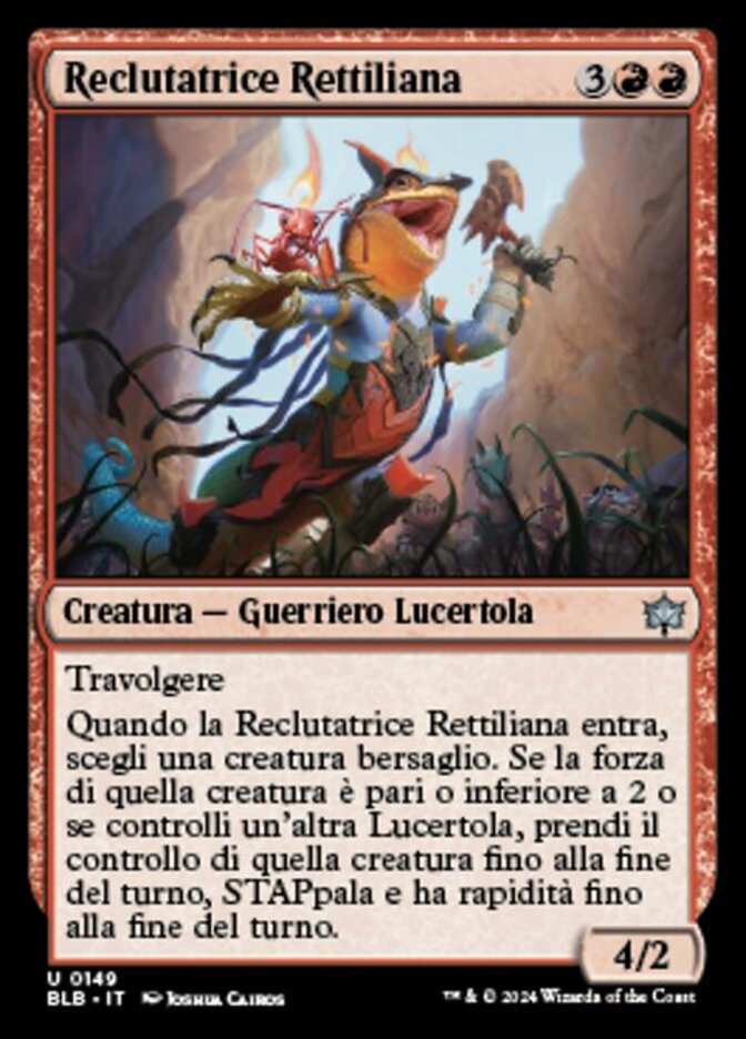 When Reptilian Recruiter enters, choose target creature. If that creature's power is 2 or less or if you control another Lizard, gain control of that creature until end of turn, untap it, and it gains haste until end of turn.