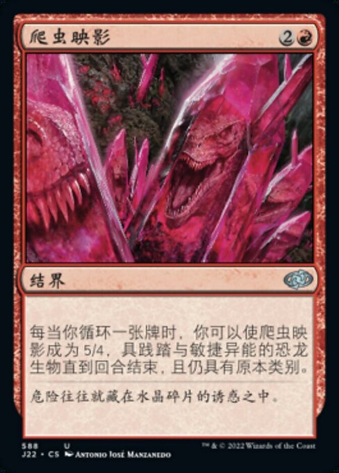 | Rules | Whenever you cycle a card, you may have Reptilian Reflection become a 5/4 Dinosaur creature with trample and haste in addition to its other types until end of turn. |