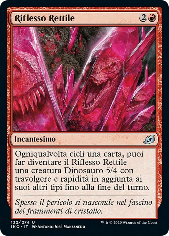 | Rules | Whenever you cycle a card, you may have Reptilian Reflection become a 5/4 Dinosaur creature with trample and haste in addition to its other types until end of turn. |