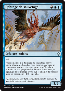 | Rules | Flying As Rescuer Sphinx enters the battlefield, you may return a nonland permanent you control to its owner's hand. If you do, Rescuer Sphinx enters the battlefield with a +1/+1 counter on it. |