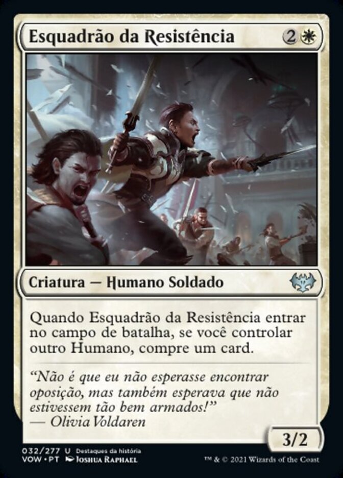 Rules When Resistance Squad enters the battlefield, if you control another Human, draw a card.