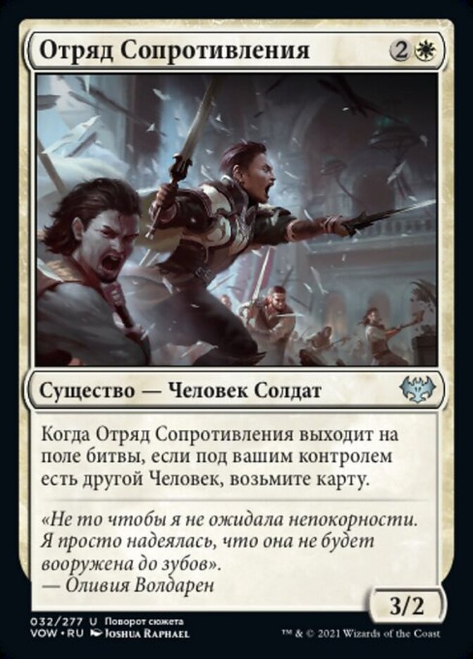 | Rules | When Resistance Squad enters the battlefield, if you control another Human, draw a card. |