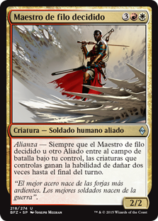 | Rules | Rally — Whenever Resolute Blademaster or another Ally enters the battlefield under your control, creatures you control gain double strike until end of turn. |