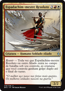 | Rules | Rally — Whenever Resolute Blademaster or another Ally enters the battlefield under your control, creatures you control gain double strike until end of turn. |