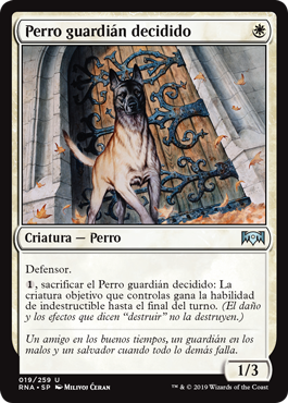 | Rules | Defender , Sacrifice Resolute Watchdog: Target creature you control gains indestructible until end of turn. (Damage and effects that say "destroy" don't destroy it.) |
