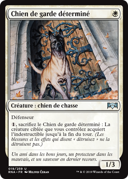 | Rules | Defender , Sacrifice Resolute Watchdog: Target creature you control gains indestructible until end of turn. (Damage and effects that say "destroy" don't destroy it.) |