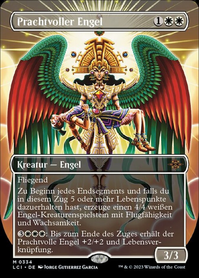 | Rules | Flying At the beginning of each end step, if you gained 5 or more life this turn, create a 4/4 white Angel creature token with flying and vigilance. : Until end of turn, Resplendent Angel gets +2/+2 and gains lifelink. |