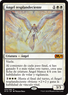 | Rules | Flying At the beginning of each end step, if you gained 5 or more life this turn, create a 4/4 white Angel creature token with flying and vigilance. : Until end of turn, Resplendent Angel gets +2/+2 and gains lifelink. |