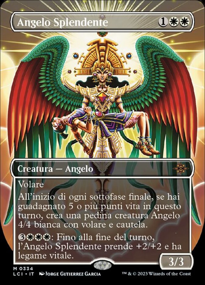 | Rules | Flying At the beginning of each end step, if you gained 5 or more life this turn, create a 4/4 white Angel creature token with flying and vigilance. : Until end of turn, Resplendent Angel gets +2/+2 and gains lifelink. |
