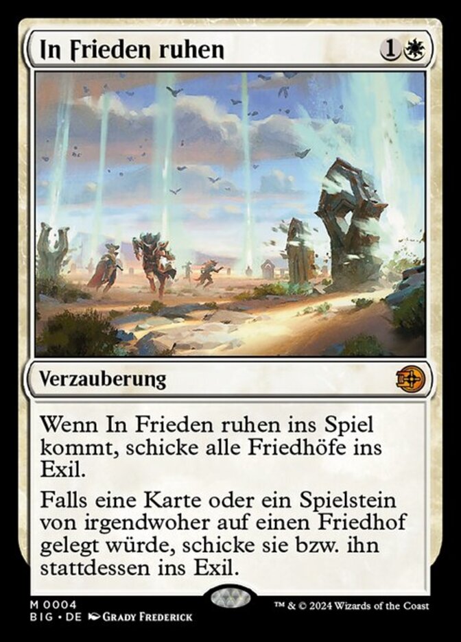 | Rules | When Rest in Peace enters the battlefield, exile all graveyards. If a card or token would be put into a graveyard from anywhere, exile it instead. |