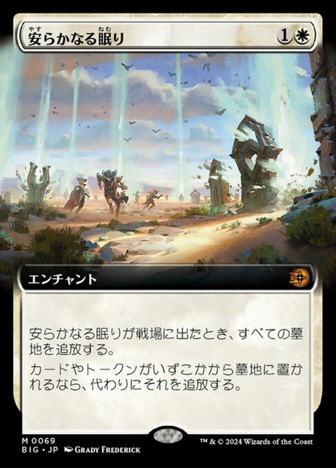 | Rules | When Rest in Peace enters the battlefield, exile all graveyards. If a card or token would be put into a graveyard from anywhere, exile it instead. |