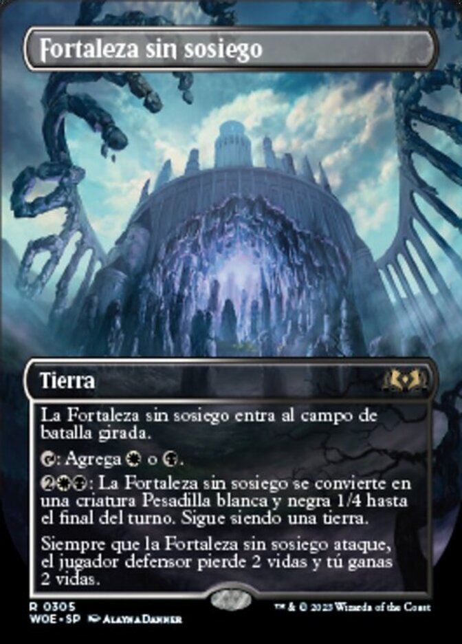 | Rules | Restless Fortress enters the battlefield tapped. : Add or . : Restless Fortress becomes a 1/4 white and black Nightmare creature until end of turn. It's still a land. Whenever Restless Fortress attacks, defending player loses 2 life and you gain 2 life. |