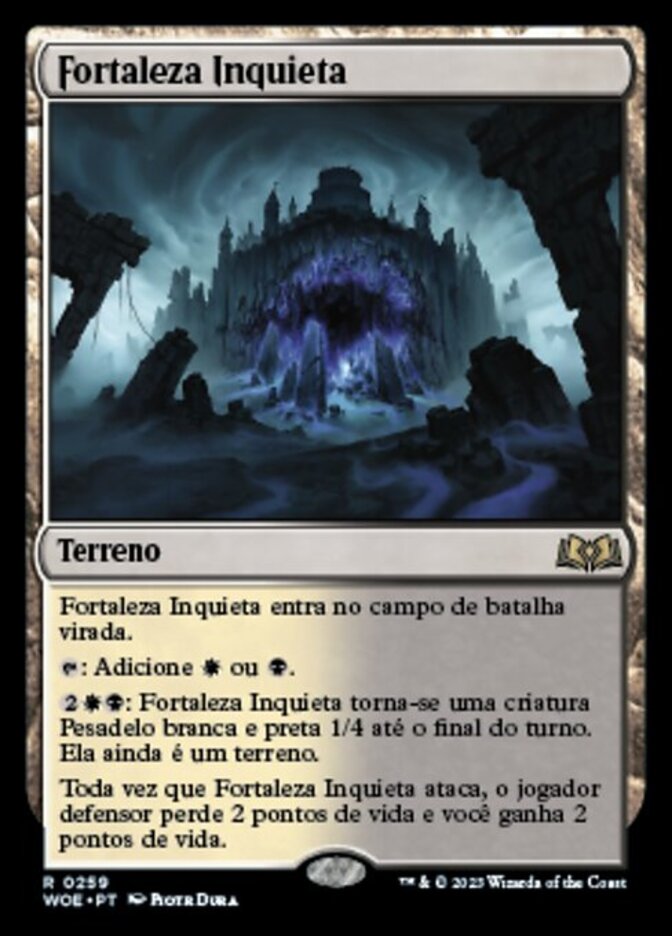 | Rules | Restless Fortress enters the battlefield tapped. : Add or . : Restless Fortress becomes a 1/4 white and black Nightmare creature until end of turn. It's still a land. Whenever Restless Fortress attacks, defending player loses 2 life and you gain 2 life. |